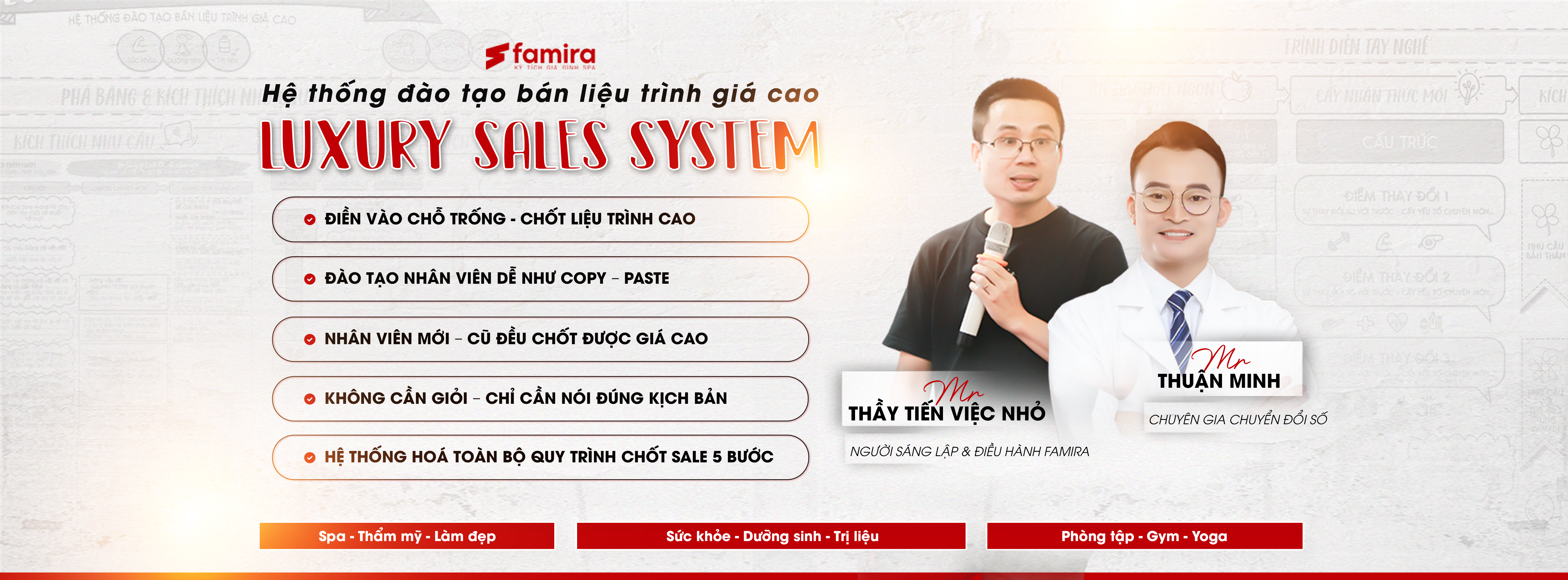 Đó là lý do chúng tôi quan sát, phân tích và nghiên cứu trên cộng đồng hàng trăm chủ spa, dưỡng sinh một cách thực tế. Chúng tôi nhận ra không thể học tập theo cách đơn thuần, cần phải có cách vừa truyền động lực, cảm hứng, vừa dễ làm và tính ứng dụng cao